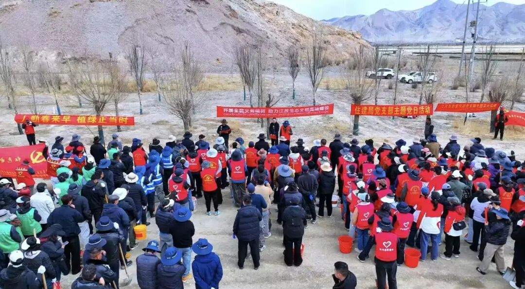 为深入践行习近平生态文明思想,牢固树立“绿水青山就是金山银山”理念,4月3日,江孜县在江热乡隆桑村组织开展“珠峰文明实践、共筑绿色江孜”志愿服务暨2026年义务植树活动。县委副书记、政府县长多吉普拉致辞,县四套班子领导、僧尼代表、驻军部队代表及广大干部职工一同参加植树,以实际行动为美丽江孜增添绿色生机。