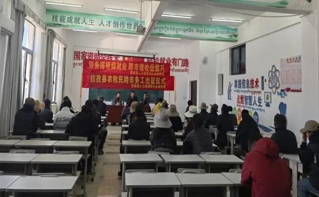 近日,拉孜县人力资源和社会保障局举行农牧民跨区域务工出征仪式,为赴阿里地区务工群众送行鼓劲,以组织化劳务输出拓宽增收渠道。
