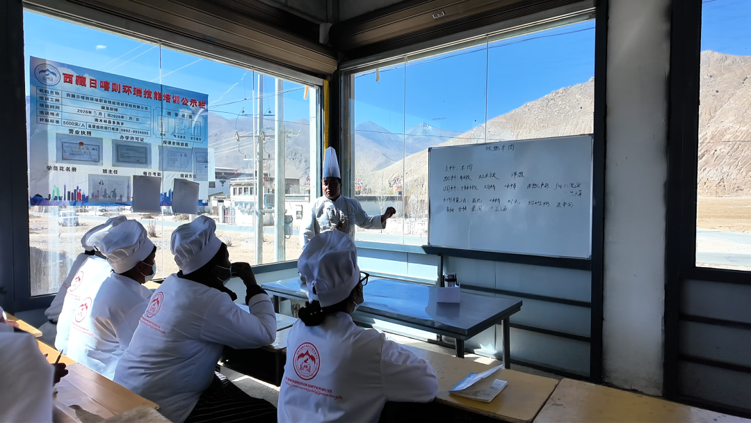 在南木林县多角乡仲康村,一场专业的厨师技能培训正在进行。白玛旦增是本村村民,在家门口参训已经10来天。他说:“这次培训就在家门口,特别方便。老师从刀工、翻锅、炒菜等各个方面进行了系统教学,不仅让我免费学到了实用技能,连吃饭都不用花钱。掌握这门手艺后,我对今后增收致富更有信心。”