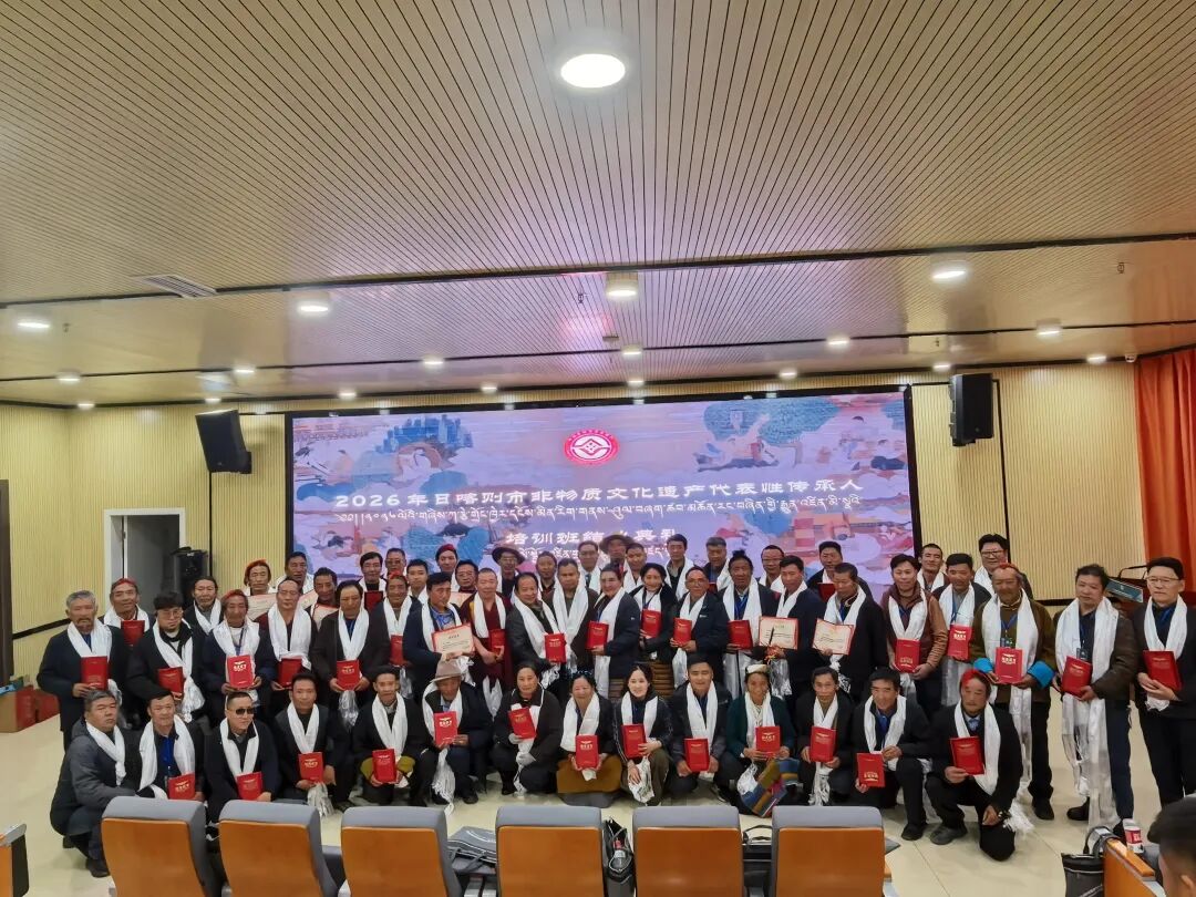 4月8日至9日,日喀则市文旅局在日喀则非遗展示中心举办2026年非物质文化遗产代表性传承人培训会,各级各类传承人代表共57人参加培训。