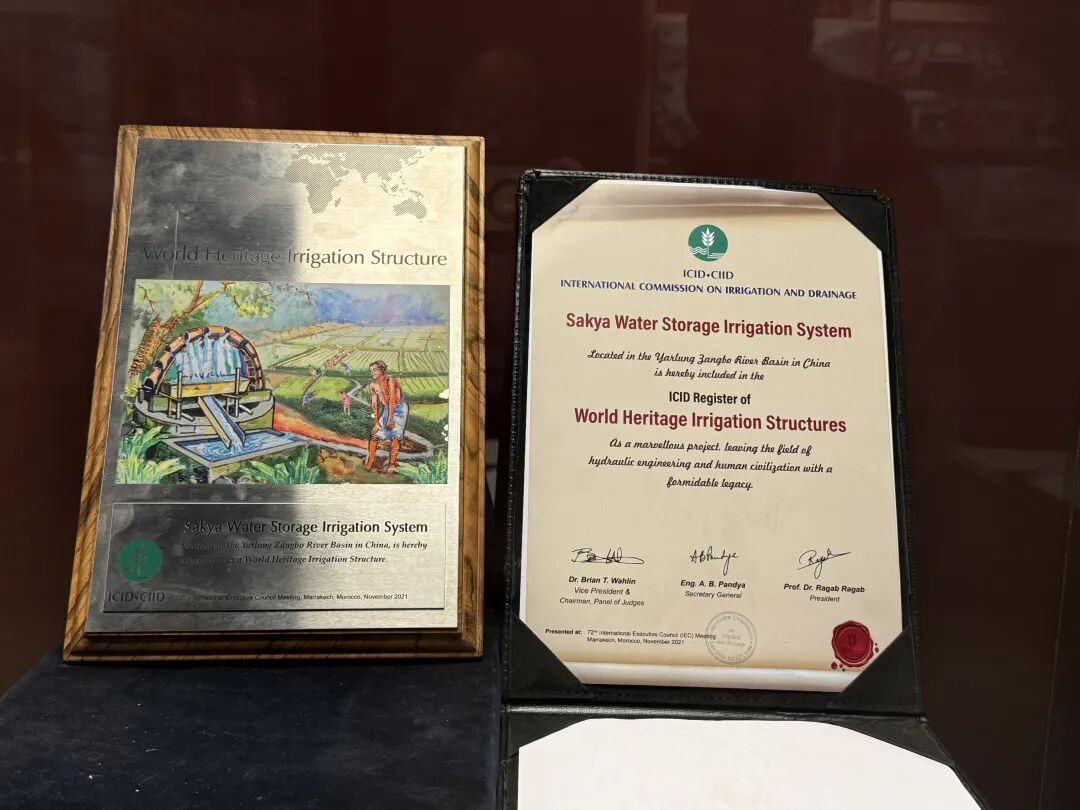 2021年11月26日国际灌溉排水委员会授牌萨迦古代蓄水灌溉系统为世界灌溉工程遗产