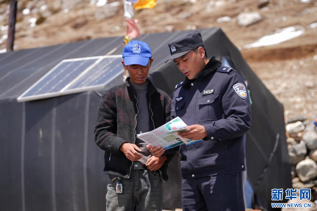 4月11日,普法宣讲小组成员在日屋口岸农牧区宣讲国家安全、禁毒等内容。(受访者供图)