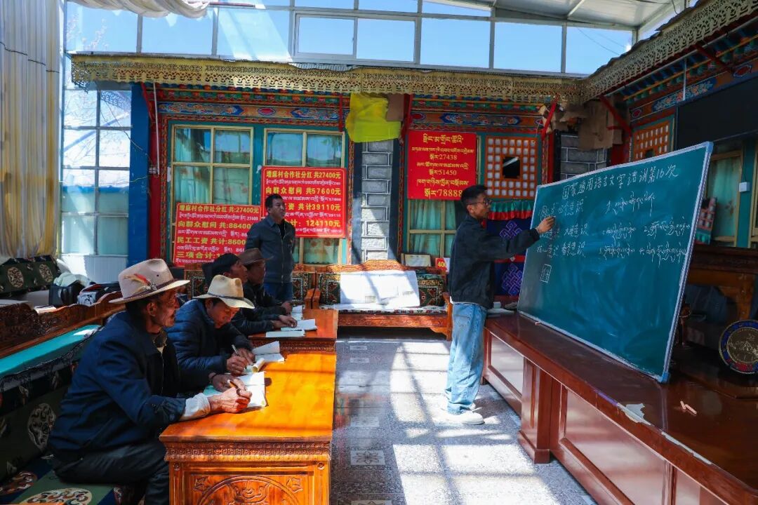 4月14日,江孜县卡堆乡增麻村珠峰城投集团驻村工作队以“一句普通话,搭起连心桥”为主题,组织村“两委”班子开展国家通用语言文字常态化宣教活动。