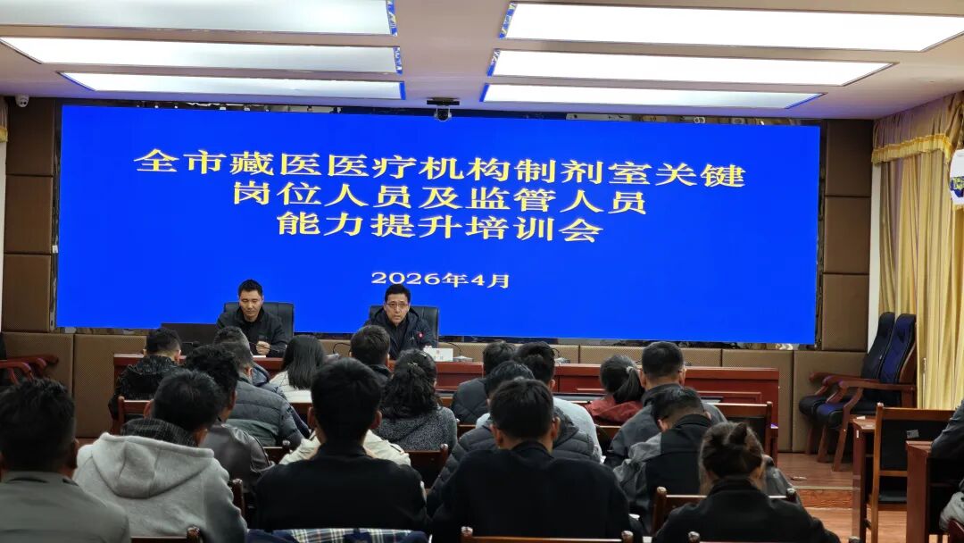 聚焦能力提升,筑牢升级根基。4月14日,以“学规范、懂标准、强技能”为核心,邀请自治区药监局业务骨干,组织藏医医疗机构制剂室从业人员与监管人员38人开展专题业务培训,紧扣《西藏自治区藏医医疗机构制剂配制质量管理规范》等法规标准,围绕制剂室布局优化、设施设备配置、质量管理体系、人员操作规范等关键环节,通过政策解读、案例剖析、实操讲解相结合的方式,既为从业人员补齐专业短板、明晰改造方向,也为监管人员提升指导能力、规范监管流程,实现“双向赋能、同频提升”,为后续实地升级改造奠定坚实理论与实操基础。