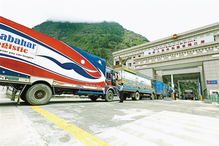 图为10月5日,即将从日喀则市吉隆口岸出境的尼泊尔货车。通讯员 肖富贵 摄