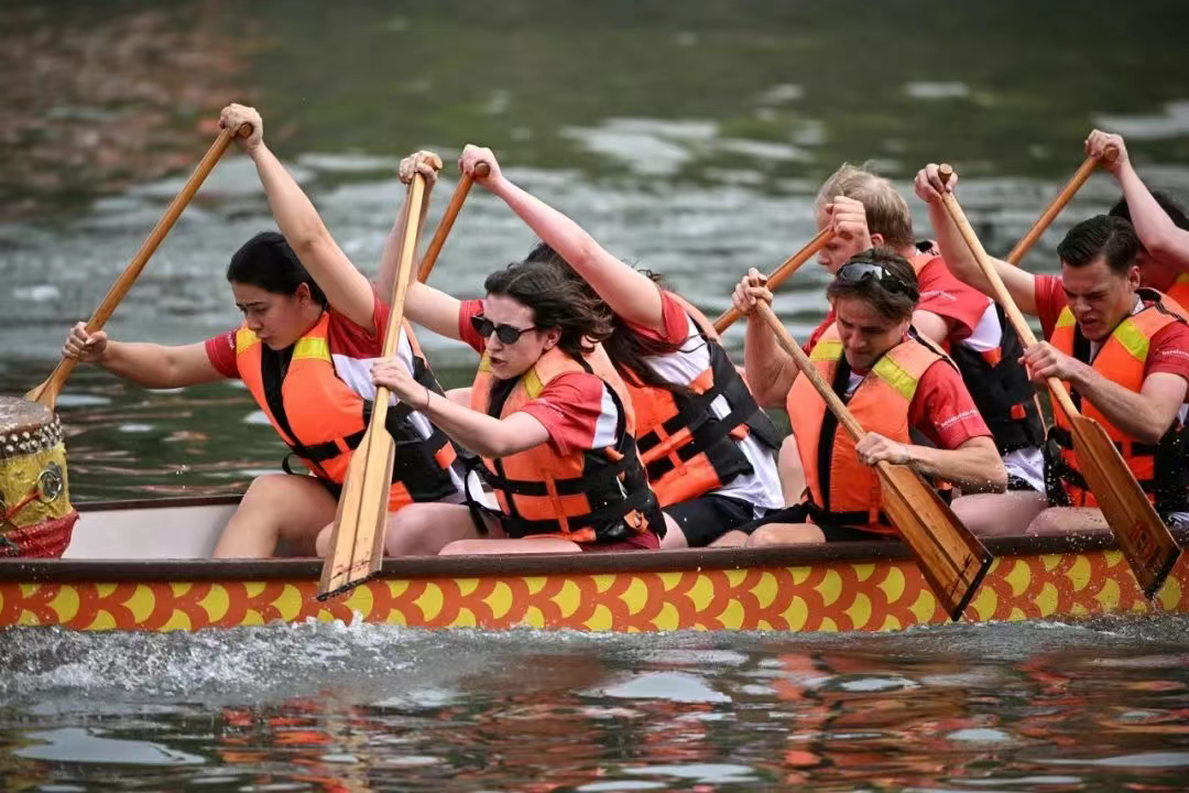 第二十一届上海苏州河城市龙舟邀请赛上,国际友人组队参赛。图据上海发布