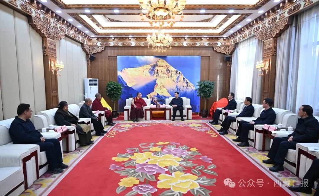近日,自治区党委书记王君正在日喀则市调研宗教工作。调研中,王君正会见了班禅额尔德尼·确吉杰布。记者 旦增西旦 摄