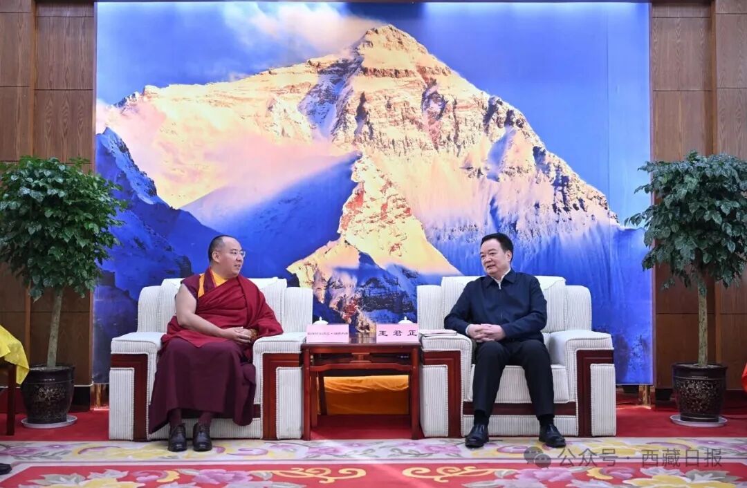 调研中,王君正会见了班禅额尔德尼·确吉杰布,对其在藏系列佛事活动和社会调研的顺利开展表示祝贺。王君正指出,班禅额尔德尼·确吉杰布回藏履职以来,深入学习贯彻习近平总书记关于宗教工作、西藏工作的重要指示和新时代党的治藏方略,广泛接触僧俗群众,大力宣传马克思主义宗教观,在“三个意识”教育中作表率,积极促进宗教和顺、社会和谐、民族和睦,在推进藏传佛教中国化、铸牢中华民族共同体意识、引导信教群众投身社会主义现代化新西藏建设等方面做了积极有效的工作。希望班禅额尔德尼·确吉杰布坚定政治立场,深刻领悟“两个确立”的决定性意义,深入学习贯彻习近平总书记重要指示精神,进一步增进对习近平总书记和党中央的政治认同、思想认同、情感认同,始终做到与党同心同德、同向同行。带头爱国爱教,大力弘扬藏传佛教爱国爱教优良传统,坚决维护祖国统一、民族团结,旗帜鲜明反对分裂,大力宣传藏传佛教在促进各民族交往交流交融中的历史事实,全力维护民族团结进步、社会和谐稳定的良好局面。研习经典,精深造诣,不断深化宗教学修,加强各方面知识的学习和掌握,对教规教义作出符合社会发展、时代进步的阐释,促进藏传佛教与社会主义社会相适应。持重善律,涵养情操,自觉遵行“四条标准”,积极践行社会主义核心价值观,严明教规戒律,加强教风建设,持续深化拓展“国家意识、公民意识、法治意识”教育成果,努力把各方面智慧和力量凝聚到社会主义现代化新西藏建设上来。