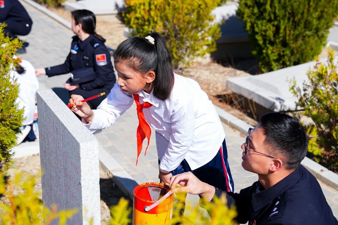 仪式落幕,温情延续。团市委、市少工委联合日喀则边境管理支队开展“缅怀英烈承壮志 守护边境育新人”红领巾寻访寻迹主题队日活动,全体人员出队旗、唱队歌,敬献鲜花、默哀致敬,少先队员重温入队誓词、集体呼号。随后,队员们在民警带领下为墓碑描红,全体人员共同栽种纪念树;少先队员聆听老兵的革命故事,为老兵佩戴红领巾、敬献礼品,分享寻访感悟,最后共同观看纪念影片,传承英烈精神、赓续红色血脉。