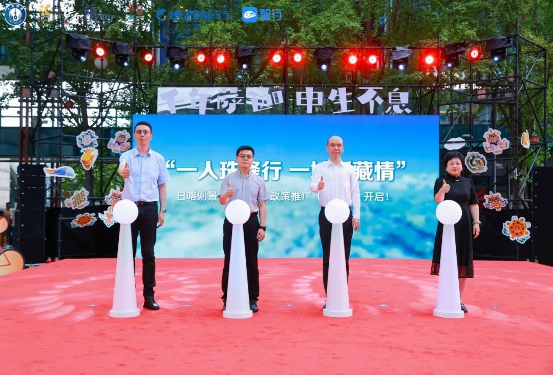 一支《如愿以偿的旅行》旅游宣传片带现场观众走近了萨迦县所在的“珠峰之乡”日喀则。恰逢对口支援西藏三十周年和第35届上海旅游节,为答谢回馈上海市长期以来对日喀则的无私援助,在上海市援藏干部联络组积极推动下,日喀则市委、市政府、日喀则市文化和旅游局定于 8 月 1 日起,向上海市民免费开放珠峰景区,并在此基础上,从本月起至今年年底,将萨迦寺景区、卡若拉冰川景区和奇林峡景区加入免费开放清单。其中,萨迦寺景区更是近年来首次面向上海游客免票。为向徐汇市民游客送出该福利,葛永铭副局长、唐振国主任、陈申副局长和缪彬斌副县长共同官宣启动了“一人珠峰行 一城援藏情”日喀则景区对沪免票政策推广(徐汇站)。