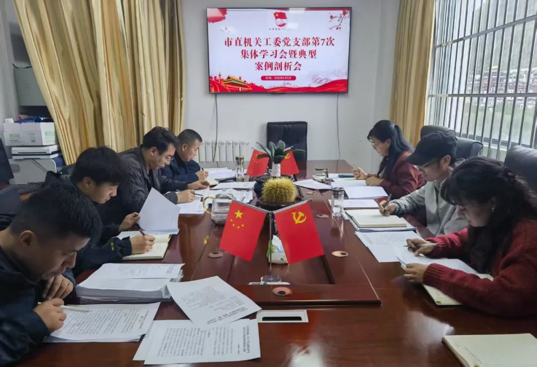 近日,市直机关工委党支部召开第7次集体学习会暨典型案例剖析会。传达学习了习近平总书记近期重要讲话精神,集中学习了《党政机关厉行节约反对浪费条例》《党政机关国内公务接待管理规定》,与会党员围绕“李献林、叶金广等人违规吃喝严重违反中央八项规定精神问题”作案例剖析发言。