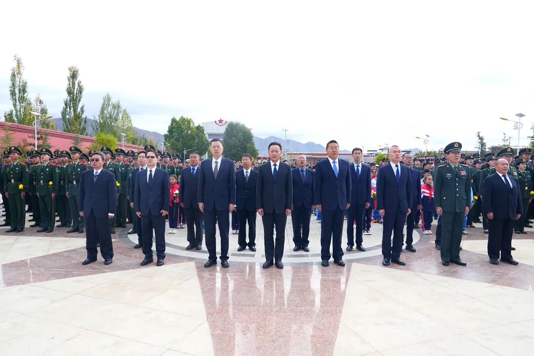 秋风寄哀思,鲜花献英烈。日喀则烈士陵园内松柏苍翠,烈士纪念碑巍然耸立。10时许,仪式正式开始。伴随着雄壮的《义勇军进行曲》奏响,全场齐唱中华人民共和国国歌。国歌唱毕,全场肃立,向为西藏和平解放、民主改革和社会主义现代化建设事业英勇牺牲的革命烈士默哀。默哀毕,少先队员献唱《我们是共产主义接班人》,并致队礼。