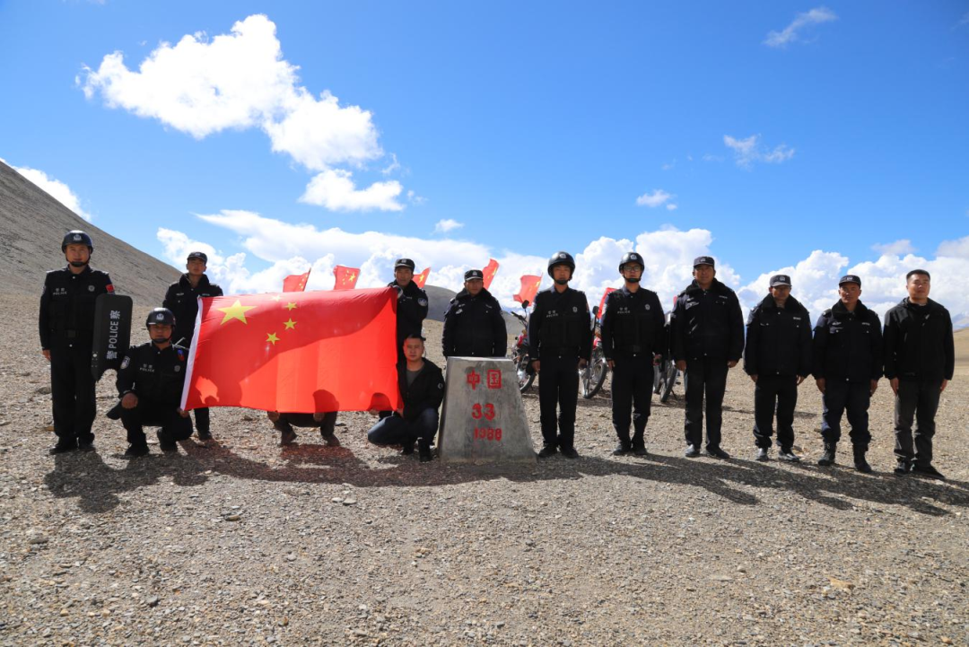 萨嘎县昌果乡新时代文明实践所联合派出所、联防队开展“喜迎双节·守护边疆”主题活动。巡逻队员精神抖擞、步伐坚定,翻山越岭开展巡边,用脚步丈量祖国的土地;在庄严界碑前仔细描红“中国”二字,并与国旗合影定格“请党放心、强国有我”的铮铮誓言,把爱国热情转化为守边固边的强大动力。