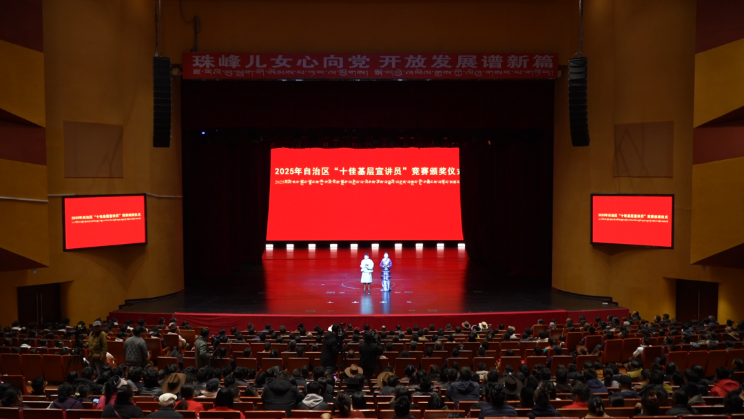 雪域高原秋风送爽,理论宣讲热潮涌动。10月23日上午,2025年西藏自治区“十佳基层宣讲员”竞赛颁奖仪式在日喀则市珠峰大剧院举行。来自全区各地的基层宣讲骨干齐聚一堂,用接地气的语言、真挚的情感传递党的声音,让思想之花在雪域绽放。
