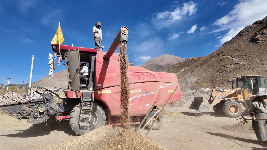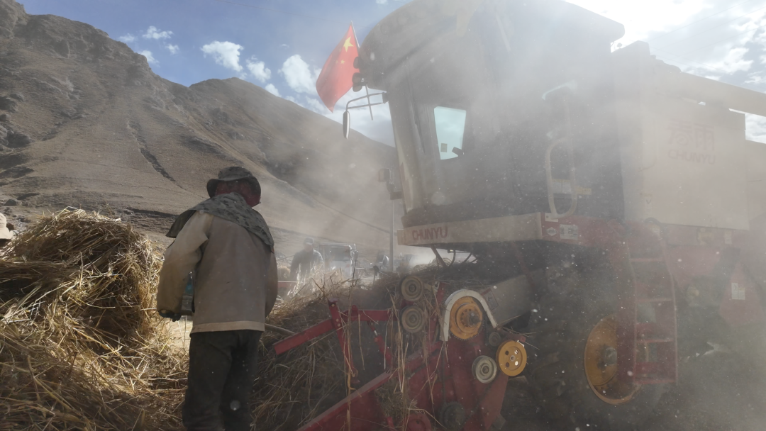 春耕时,农机手们天不亮就下地,深一脚浅一脚踩在泥里,赶在雨季前完成6700亩土地翻耕,5550亩青稞种子播撒进土里;秋收时,他们又顶着高原秋风连轴转,8250亩成熟作物及时收割脱粒,没让一粒粮食因为灾害浪费。