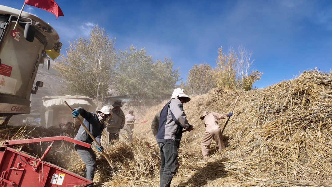 这场让村民省心又暖心的秋收,背后是扎西宗农机合作社在灾后重建中的“双线发力”——既当田间地头的“生产尖兵”,守护群众“粮袋子”,又做增收致富的“暖心桥梁”,帮受灾群众在家门口挣到钱。
