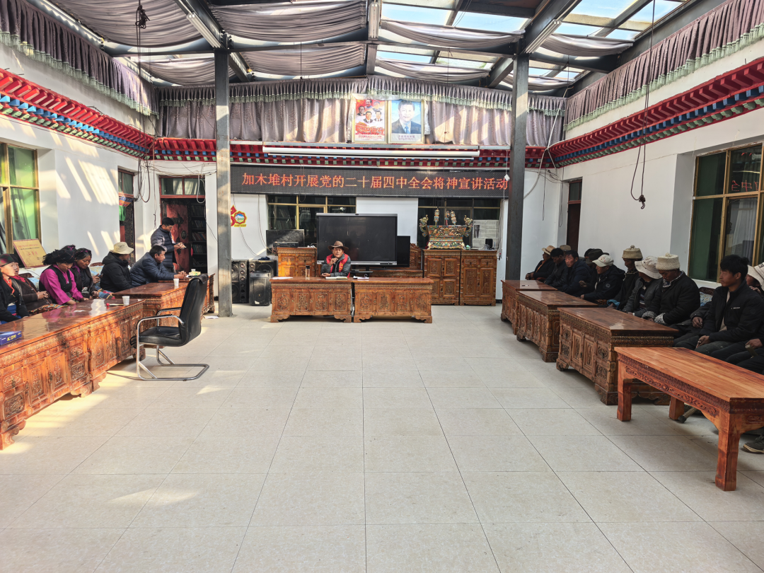 近日,桑珠孜区甲措雄乡加木堆村驻村工作队组织群众开展了党的二十届四中全会精神宣讲活动。宣讲员紧密围绕全会提出的重大决策部署,紧密结合本村发展实际和农牧民群众关心的热点、焦点问题。从乡村振兴战略如何在本村落地生根,到民生保障方面有哪些新政策惠及村民;从基层治理的重要性,到如何发挥村民自身力量参与乡村建设,宣讲员运用通俗语言和贴近生活的实例,深入阐释了全会精神的核心要义。宣讲中还穿插了西藏本地乡村通过发展特色产业实现增收致富的成功案例,让村民直观感受到乡村振兴带来的巨大机遇。对于具体的民生政策,宣讲员结合数据和工作流程进行说明,力求让村民听得明白、心中有数,并鼓励大家积极参与村务管理,共同建设和谐稳定家园。