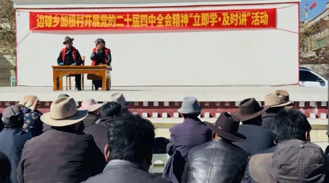 桑珠孜区边雄乡加根村驻村工作队精心组织宣讲大会:村文艺队载歌载舞呈现产业兴旺、村容整洁、村民幸福的新生活;知识竞赛抢答声此起彼伏,政策要点入脑入心;宣讲员用“家常话”讲解全会关于农业农村现代化的部署要求,细数近年来道路交通、安全饮水、产业发展等群众看得见、摸得着的变化,让大家更加坚定听党话、感党恩、跟党走的信心决心。
