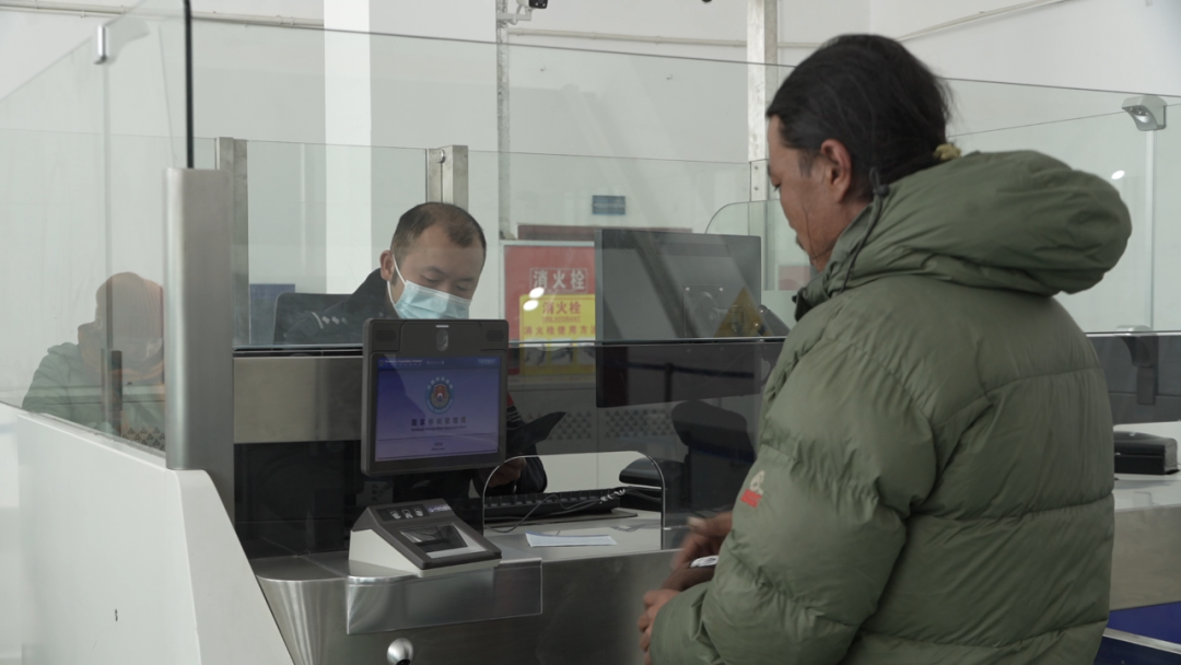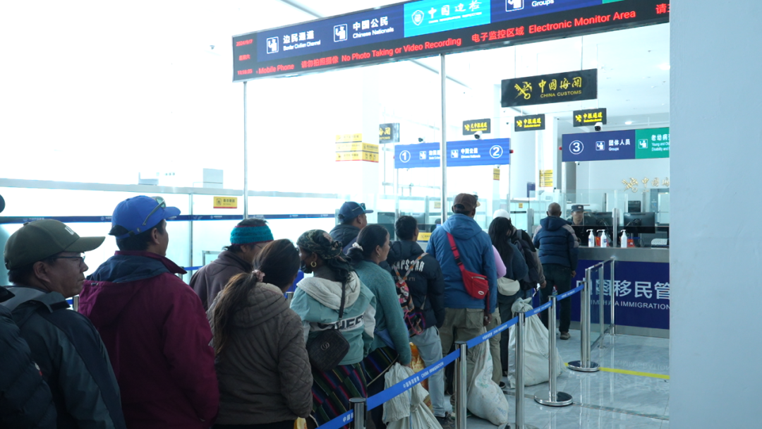 清晨8点的里孜口岸边检大厅,早已褪去高原清晨的宁静,取而代之的是高效运转的繁忙景象。电子显示屏上,中、藏、英三种语言交替滚动播放通关须知与实时排队信息,尽显国际化服务氛围。边检员次仁卓玛身着制服,神情专注地快速翻动护照、录入信息,一系列动作行云流水,精准高效。