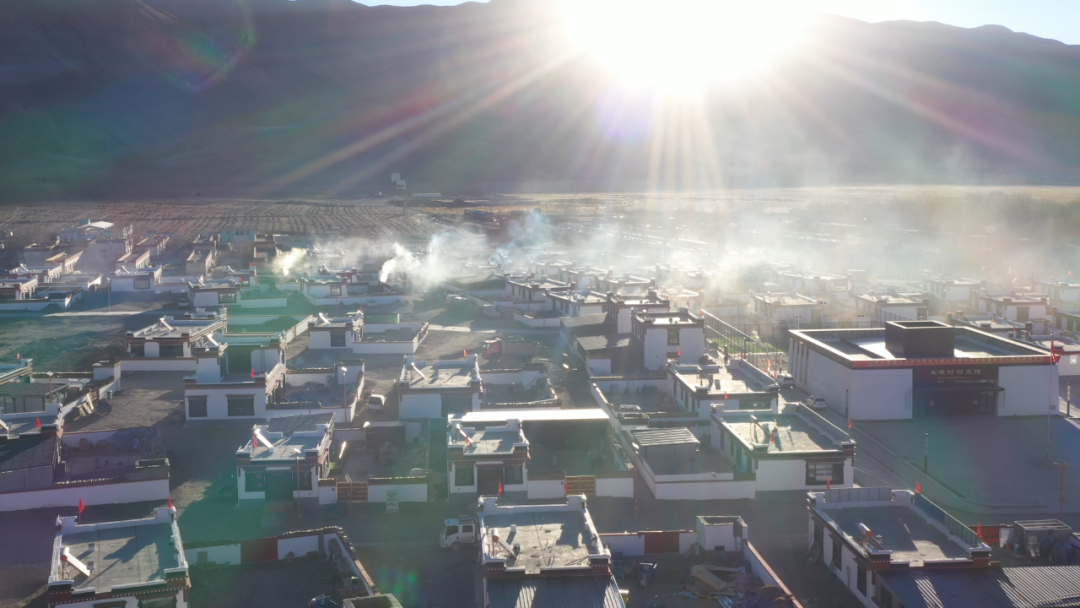 而今,当晨光再洒这片土地,旧痕已被新生的气息层层覆盖。藏式新居鳞次栉比,洁白外墙在高原阳光下泛着温润的光,钢筋混凝土框架与保温层筑牢了安心的根基,屋顶的五星红旗迎风舒展,每一次摆动都诉说着生机的复苏。
