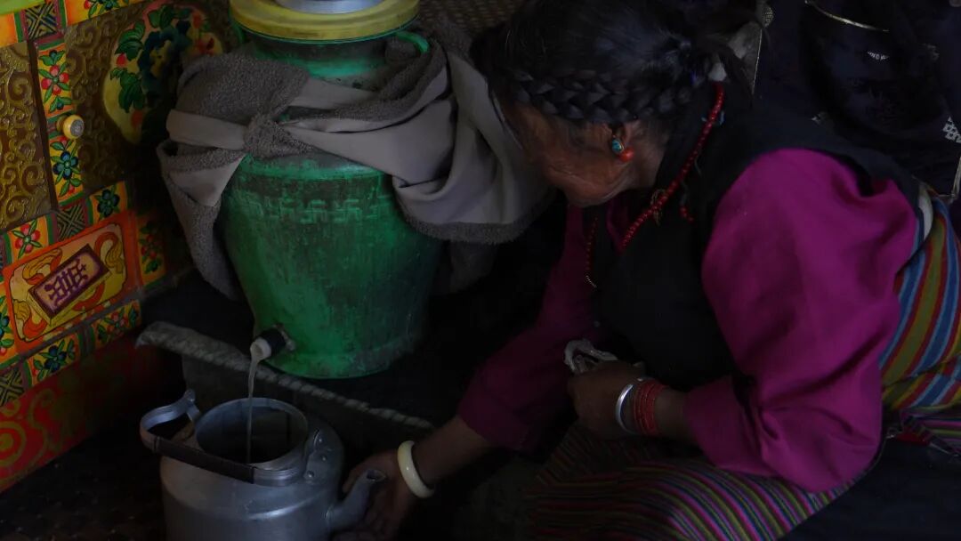 下午三时许,各项准备渐近尾声。家中暂时安静下来。卓嘎为每个人斟上新熬的酥油茶,醇香的青稞酒,全家人围坐在一起,享受着年三十午后这份忙碌后的宁静与满足。茶香袅袅,映照着每一张充满期待的笑脸。