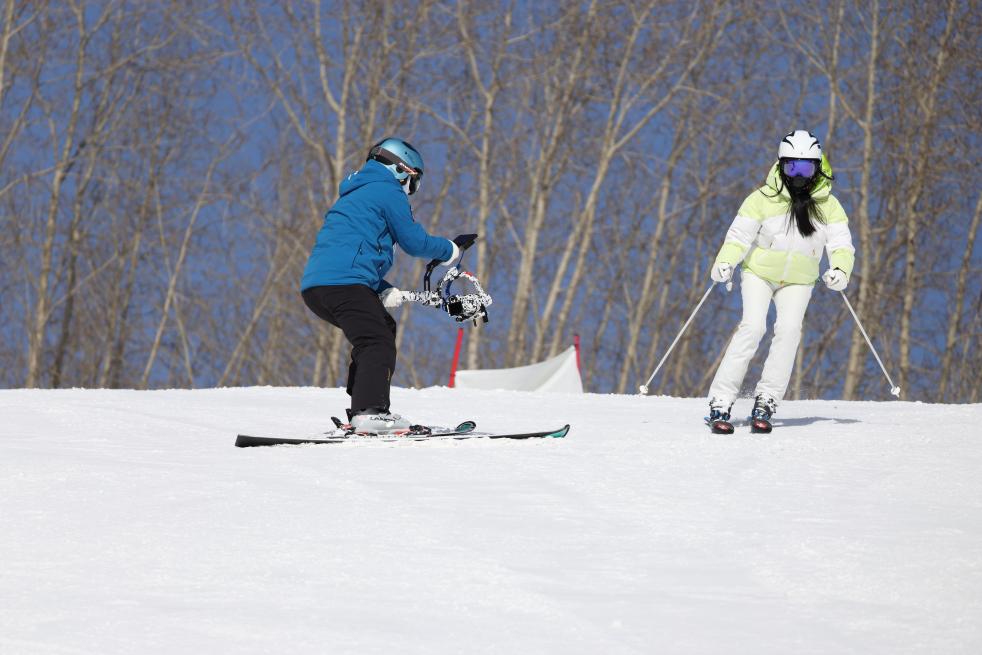 摄影师曲晓彤在跟拍滑雪爱好者。(受访者供图)