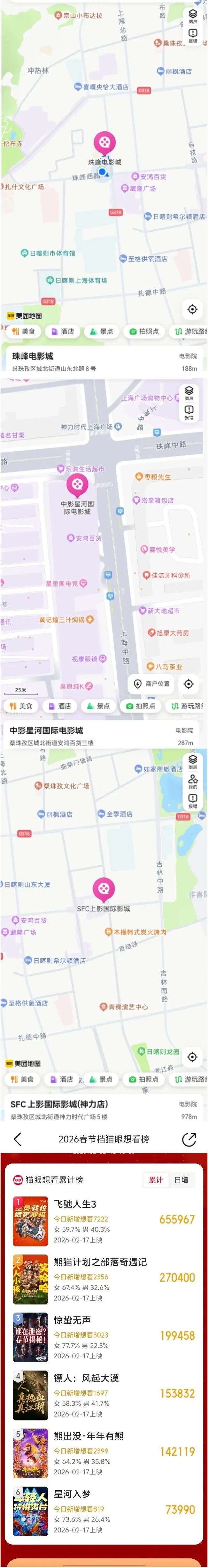 近日,记者走访日喀则珠峰电影城、中影星河国际影城等影院看到,《镖人》《惊蛰无声》等热门影片海报整齐排列,节日氛围浓厚。等候观影的小朋友云旦加措和伙伴们,趁着假期一同前来观看《疯狂动物城2》。谈及最期待的春节档影片,孩子眼中满是期待:“我最期待《年年有熊》了,每年都会来影院看熊出没系列动画大电影,特别开心!”