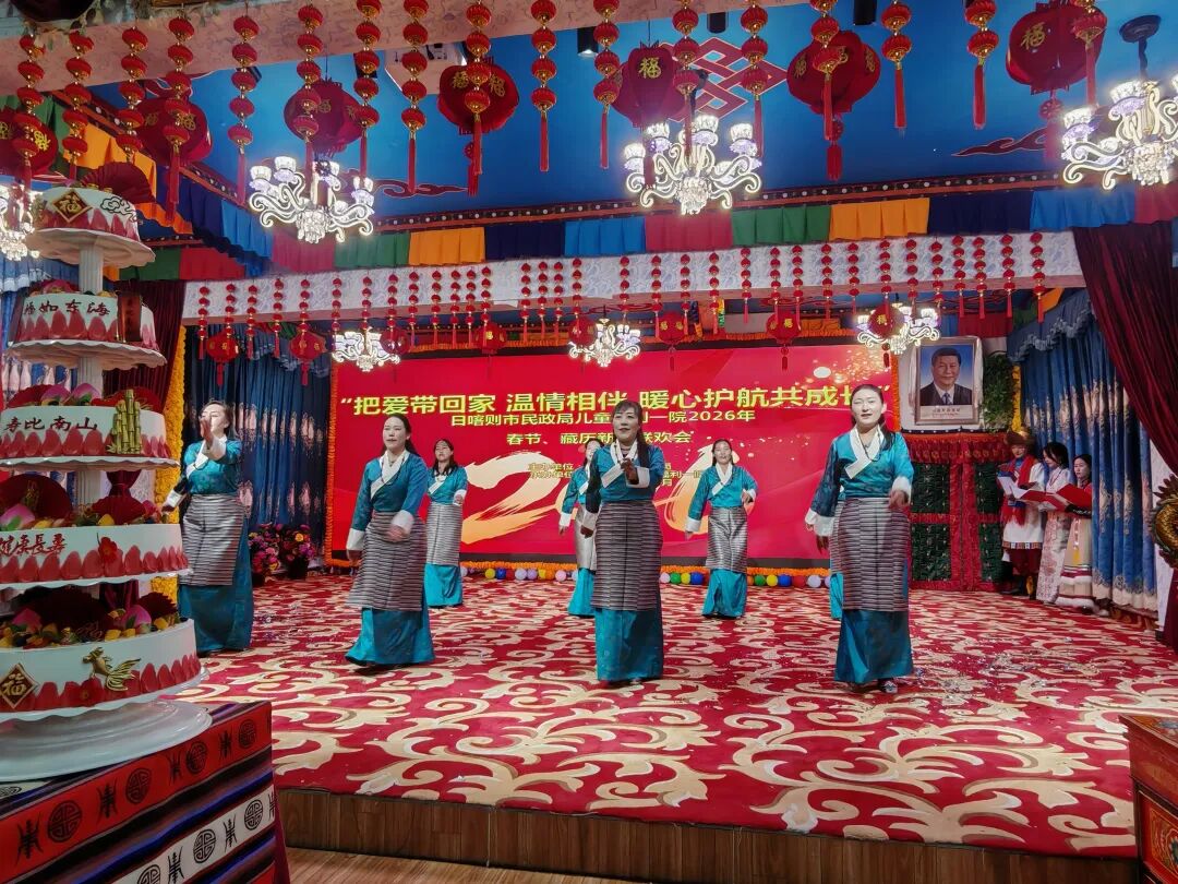 新春逢盛世,雪域庆团圆。正值春节与藏历新年双节来临之际,日喀则市儿童福利一院处处张灯结彩、喜气洋洋,洋溢着浓浓的节日气息。院内摆放着特色藏式切玛与吉祥装饰,孩子们与爱心爸爸妈妈们身披象征温暖与祝福的红色围巾,舞台一侧五层祝寿蛋糕格外醒目,温馨祥和的氛围扑面而来。一场以“把爱带回家 温情相伴 暖心护航共成长”为主题的新春联欢会温情启幕,大家欢聚一堂、载歌载舞,共庆吉祥新年。