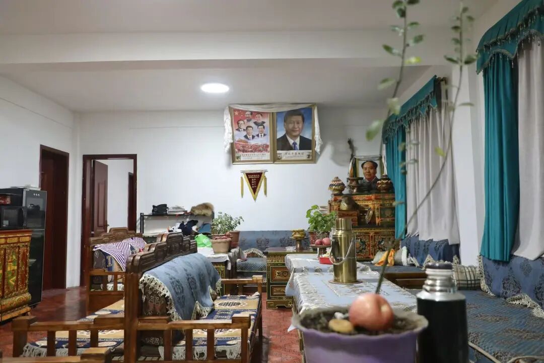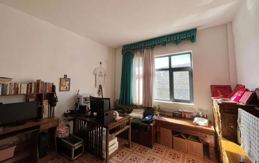 这间坐北朝南的小书房,采光通透,若是换作村内其他人家,大多会将其布置成小卧室,而在米玛旦增这里,它成了安放热爱与理想的小天地。书架靠墙而立,摆满了各类书籍,电脑桌临窗摆放,一把吉他、一柄扎念琴斜倚墙角,文艺又温馨。“以前住的房子条件有限,做饭、吃饭、待客全挤在一屋,哪有闲心琢磨爱好。现在国家给我们盖了结实的钢筋水泥房,功能分区明明白白,才有了这专属的小书房。”米玛旦增笑着感慨,搬进新居的日子里,这间小小的书房,成了他看书、弹琴、做视频剪辑的专属空间,装下了他所有的热爱。