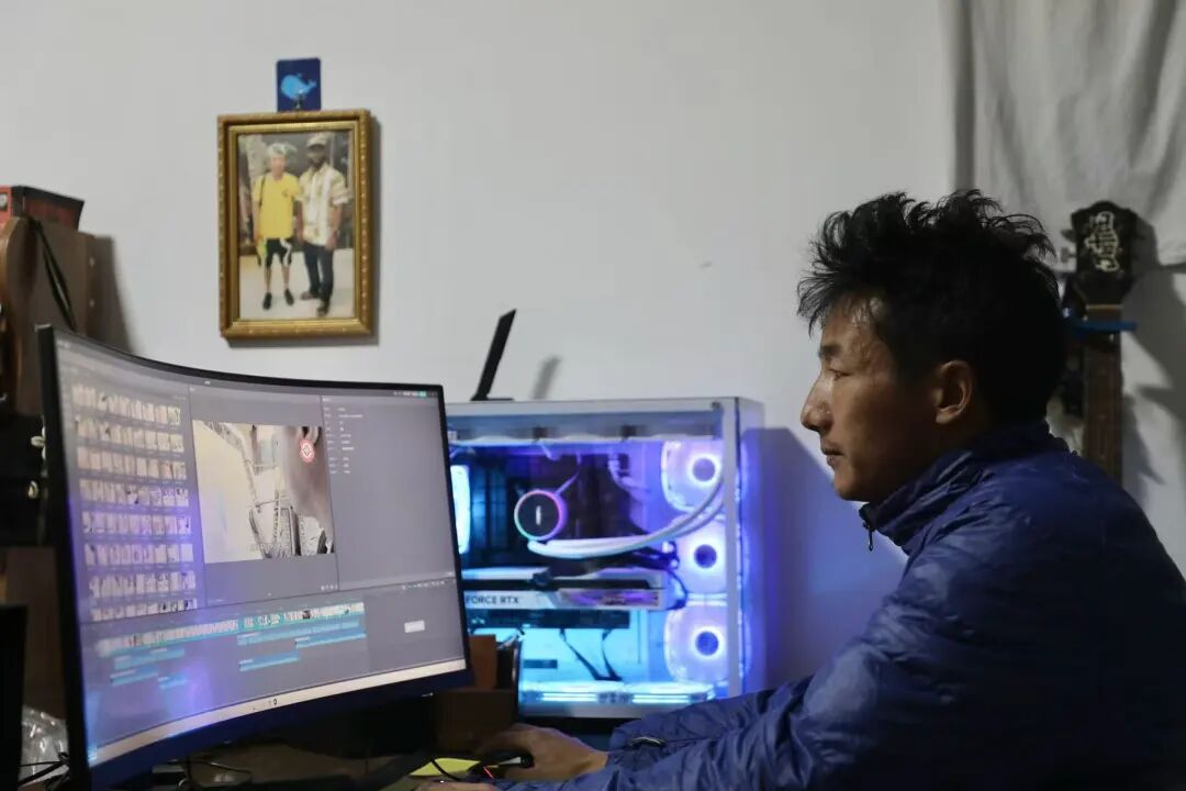 米玛旦增曾是村里的村干部,成家后,一颗想要出去看看、学些新本事的心始终跳。不顾身边人的不解,他放下安稳的生活,用4年时间外出学习技术,偶然踏入传媒行业,从最初单纯喜欢摄影与剪辑,到如今将其变成养家糊口的真本领,一路走来得偿所愿。