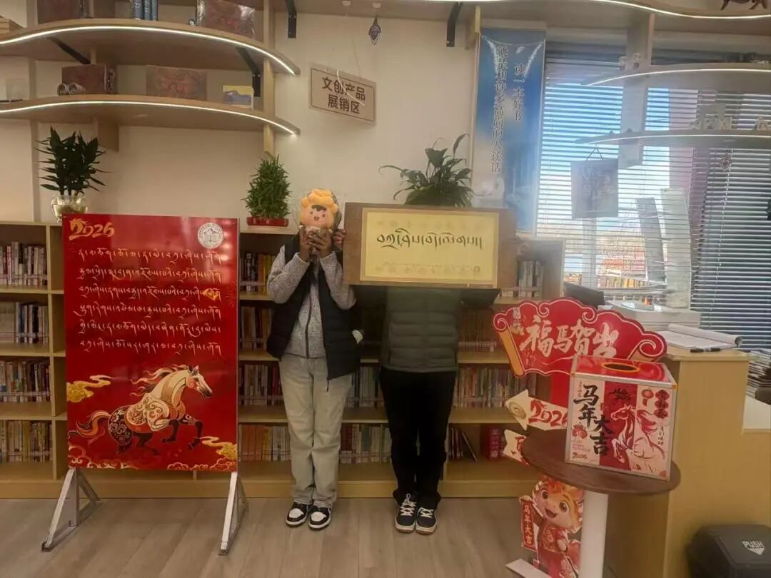 本次活动以“阅读打卡+祈福传递+盲盒抽奖”为核心,现场精心布置藏式哈达、马年吉祥挂件、藏汉双语海报、吉祥结及传统习俗展板,打造沉浸式双节书香场景,让读者在书香中感受浓浓年味与文化温度。