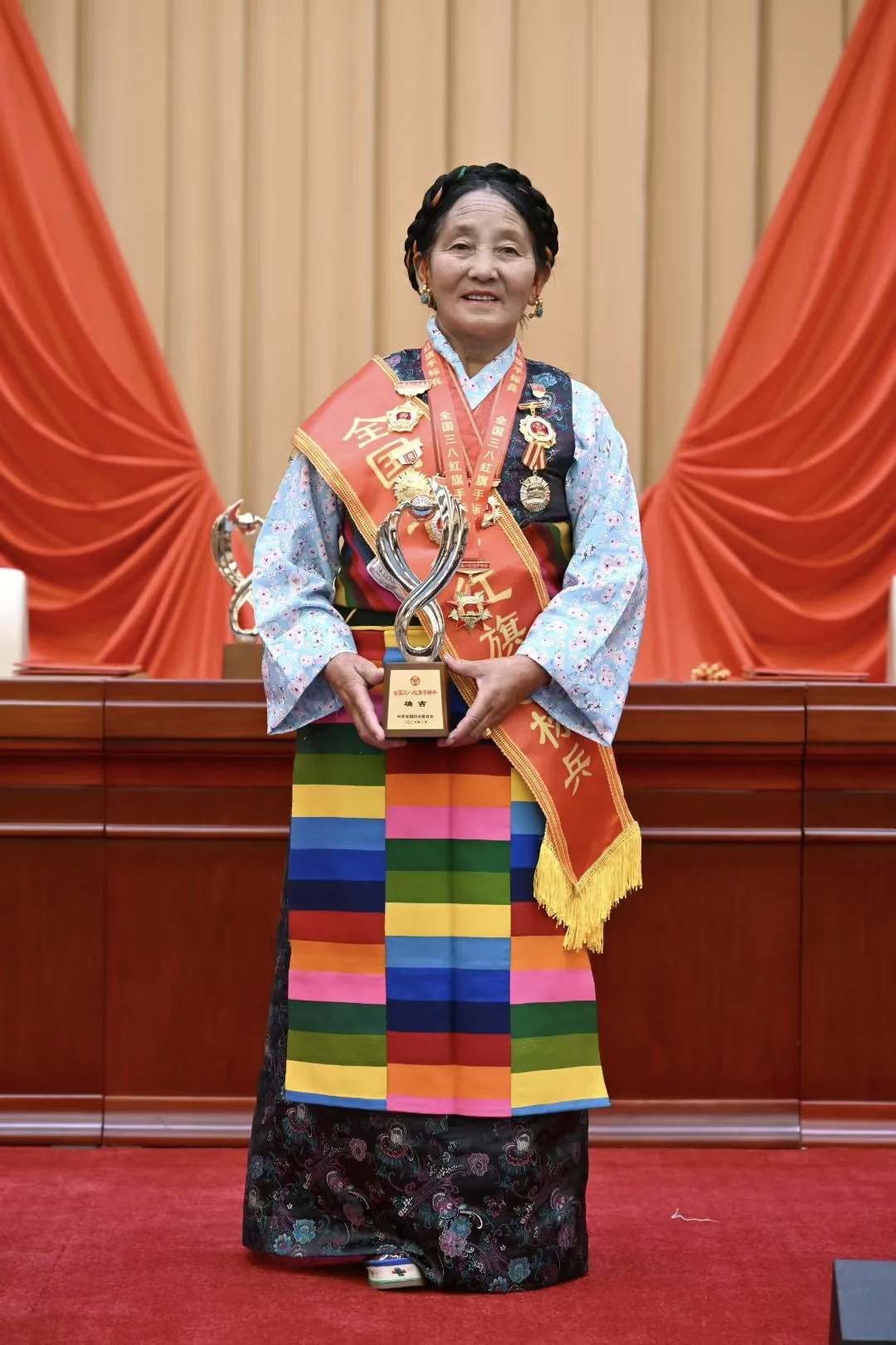 近日,确吉老阿妈又获一项国家级荣誉:“全国三八红旗手标兵”称号。