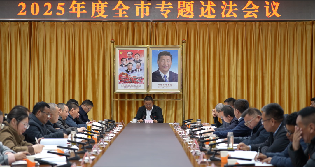 会上,南木林等6个县及市委社会工作部等11家市直部门主要负责同志依次进行了述法。