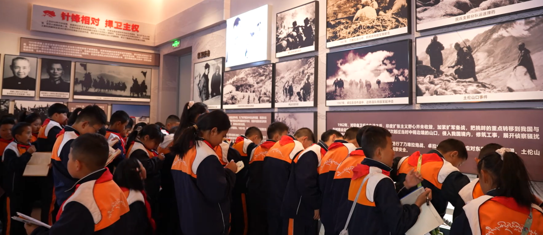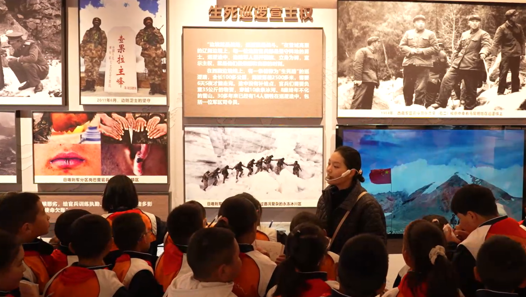 展厅中,边防官兵扎根雪域、守护国土的英勇事迹,各族群众守望相助、团结奋斗的动人故事,深深触动着每一位孩子的心灵。讲解员结合实物展品与图文资料,细致讲述了边防官兵在高原极端环境下,不畏严寒酷暑、坚守岗位使命,誓死守护祖国边境线的感人事迹,让爱国情怀在孩子们心中悄然扎根。