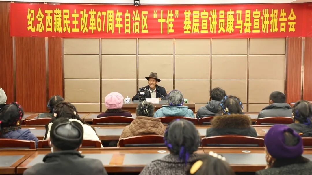 连日来,纪念西藏民主改革67周年宣讲报告会先后走进江孜、康马、南木林、岗巴等县。自治区“十佳基层宣讲员”、市雪莲花宣传队队员和“珠峰百姓名嘴”等宣讲骨干,以接地气的表达、鲜活生动的事例、真挚饱满的情感,引导广大干部群众铭记民主改革光辉历程、感恩党的深切关怀,凝心聚力建设社会主义现代化新日喀则。
