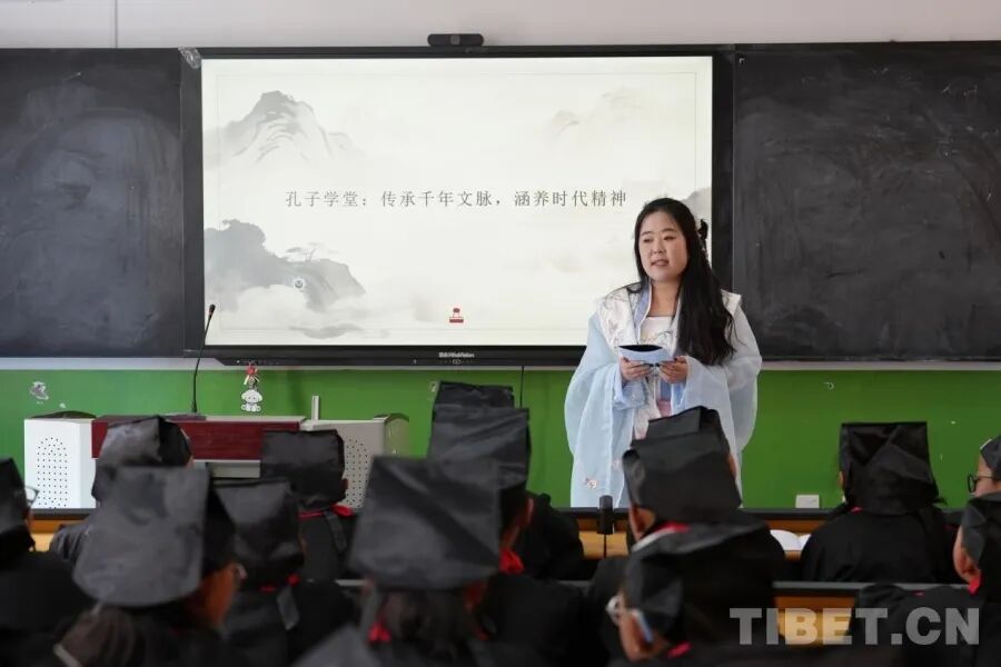 有一次,殷靓靓穿着汉服走进课堂,飘逸的衣袂瞬间吸引了所有孩子的目光。看着孩子们满眼的好奇,她和援藏团队的老师们萌生了新想法——依托山东儒家文化发源地的底蕴,在学校开设中华传统文化兴趣班,建起“孔子学堂”。在这里,孩子们读经典、学礼仪,还和济南的小伙伴同步开展传统文化活动,让孩子们对千里之外的山东,多了一份更深的亲近与向往。