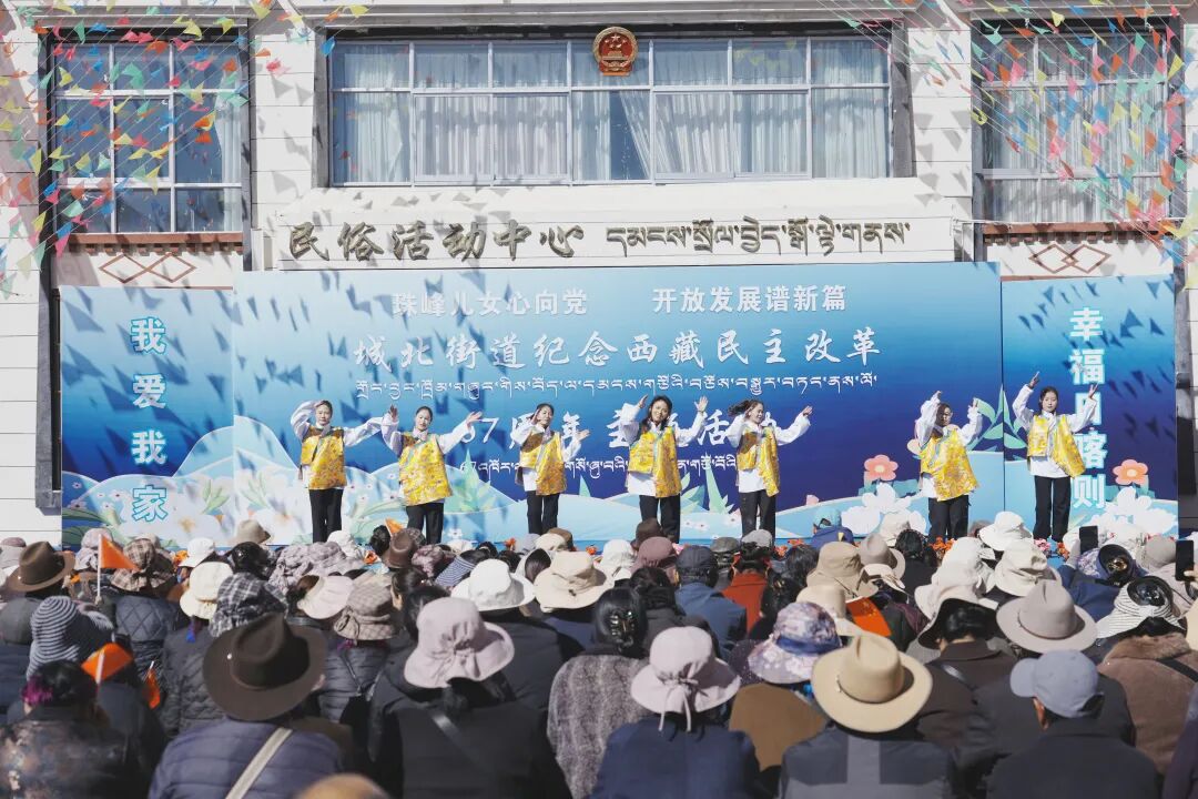 桑珠孜区城北街道组织的纪念西藏民主改革67周年主题活动同样氛围热烈。300余名干部群众齐聚一堂,共同回顾沧桑历史、致敬伟大时代、凝聚奋进力量。现场,干部群众以歌曲、舞蹈、朗诵等多种形式的文艺节目,深情讴歌党的恩情。大家说今昔、谈变化、话未来,从旧社会的苦难岁月聊到如今的幸福生活,在欢声笑语中感悟历史巨变,在真情实感中厚植家国情怀。