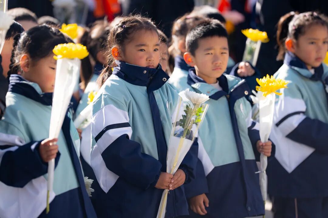 随后,少先队员们身着整齐的校服,面带崇敬,齐声献唱《我们是共产主义接班人》,用稚嫩歌声表达对英烈的深情致敬,许下新时代少年儿童传承红色基因的坚定誓言。