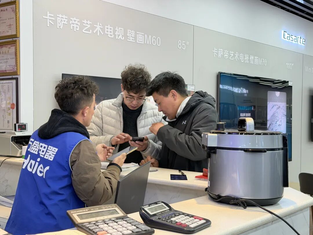 走进位于桑珠孜区的某家电卖场,浓厚的消费氛围扑面而来。店内各类家电产品琳琅满目、一应俱全,大容量冷藏柜、多功能洗衣机、超高清电视、加湿器等家用大件电器分门别类摆放。工作人员正耐心细致地为前来选购的市民讲解国家补贴政策,详细介绍补贴标准、申领流程及多重优惠叠加方式。
