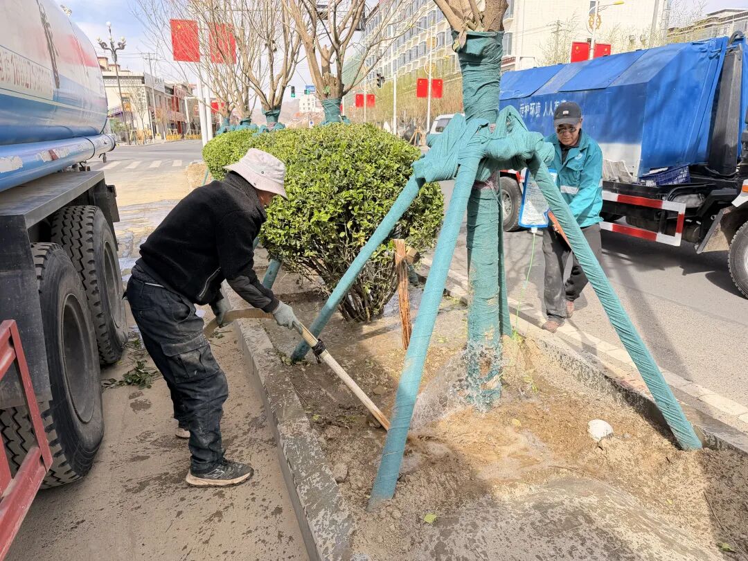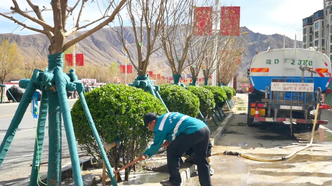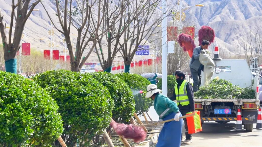 在扎德东路,一场如火如荼的绿化改造提升工程正在有序推进,作为今年日喀则市实施的绿化重点项目,这里,园林绿化工作人员各司其职、默契配合,用汗水浇灌新绿,为珠峰之乡添彩赋能。