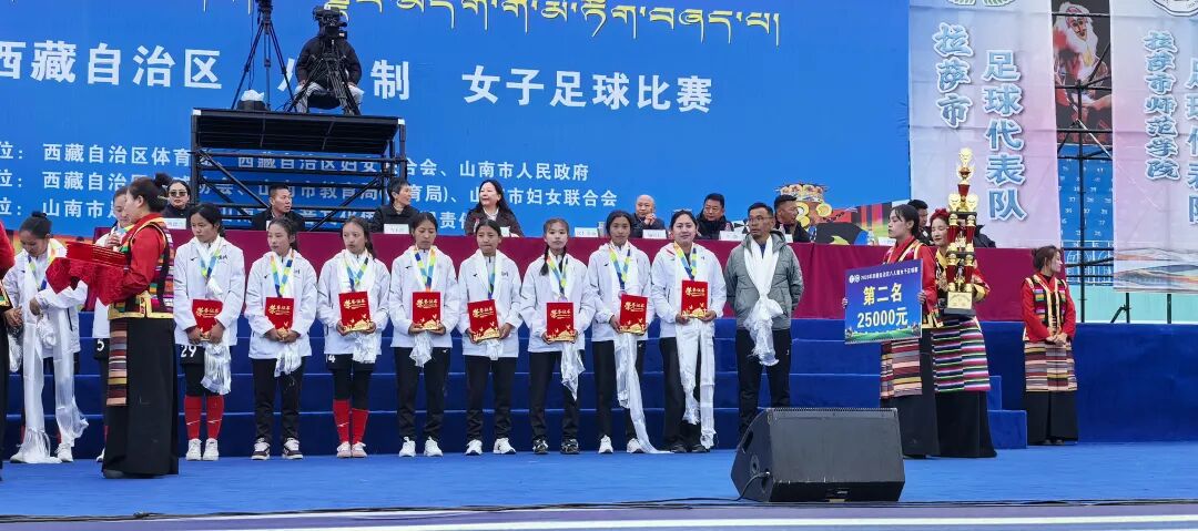 比赛中,姑娘们团结一心、奋勇争先,先后与拉萨代表队、拉萨师范学院代表队、山南代表队、昌都代表队、那曲代表队展开5场激烈角逐,全队累计攻入7粒进球。凭借稳定的赛场发挥和永不言弃的顽强斗志,队伍最终以积分优势斩获赛事亚军!