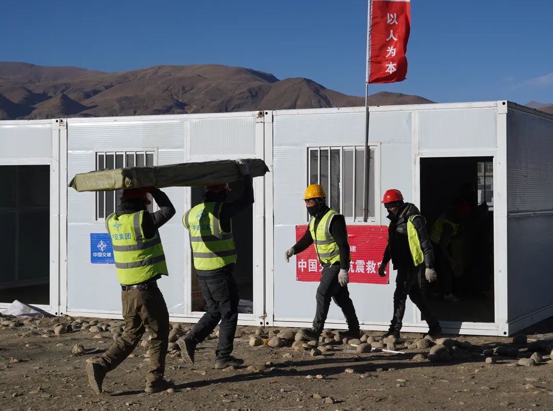 中交集团二航局二公司副总经理赵明说:“9日,这些板房就全部运进来了,还配备了高低床、火炉、棉被等。接到分配需求,这些房子将全部送往拉孜县各个受灾地区,安装完成后,群众可以拎包入住。”