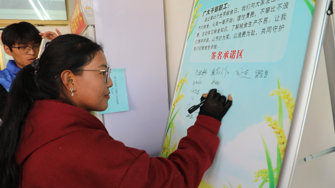 2025年10月16日,第45个世界粮食日当天,县机关后勤服务中心在机关食堂开展主题宣传活动,践行习近平总书记关于制止餐饮浪费行为的重要指示精神,响应世界粮食日“手拉手共倡多样美食,聚合力同创美好未来”及我国粮食安全宣传周“粮食节约 人人有责”的号召,引导干部职工树立爱粮节粮意识。
