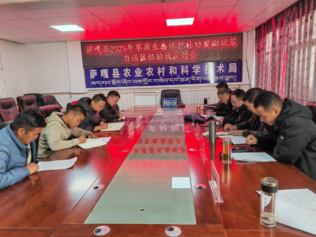 10月15日上午,组织召开2025年草原生态保护补助奖励政策自治区级验收考核反馈会。会上,由县人民政府分管副县长晋美旺久汇报萨嘎县2025年度草原生态保护补助奖励机制工作开展情况。验收组对检查中发现的问题,提出了具体的整改要求,对萨嘎县整体的草原生态保护补助奖励政策落实情况给予了充分的肯定,并进行量化评分。最终,萨嘎县顺利通过了2025年度草原生态保护补助奖励政策自治区级验收。此次顺利通过自治区级验收,标志着萨嘎县草原生态保护工作迈上了一个新台阶。