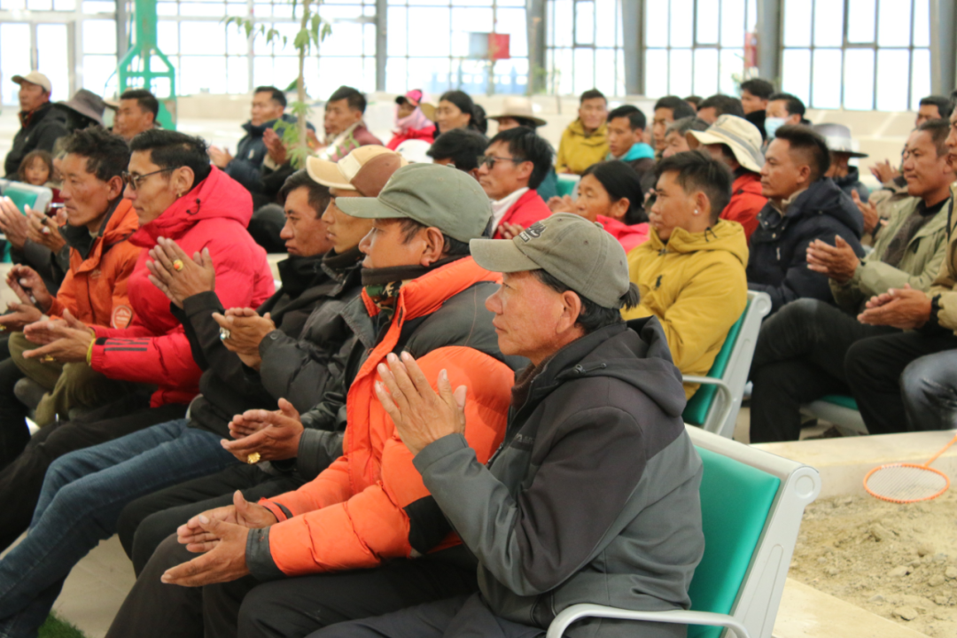 (仲巴县里孜口岸边贸协会成立大会现场隆重举行,与会代表认真参会。西绕拉珍摄)