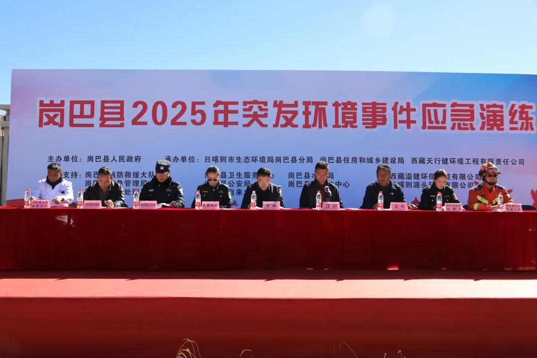 10月17日,岗巴县开展2025年突发生态环境事件应急演练,模拟了因受自然灾害影响,先后发生了县城生活污水处理厂出水水质超标、县自来水厂取水水质超标的突发生态环境事件。县政府副县长史诚同志赴现场指挥,县政府县长次旦出席活动并进行了现场点评。