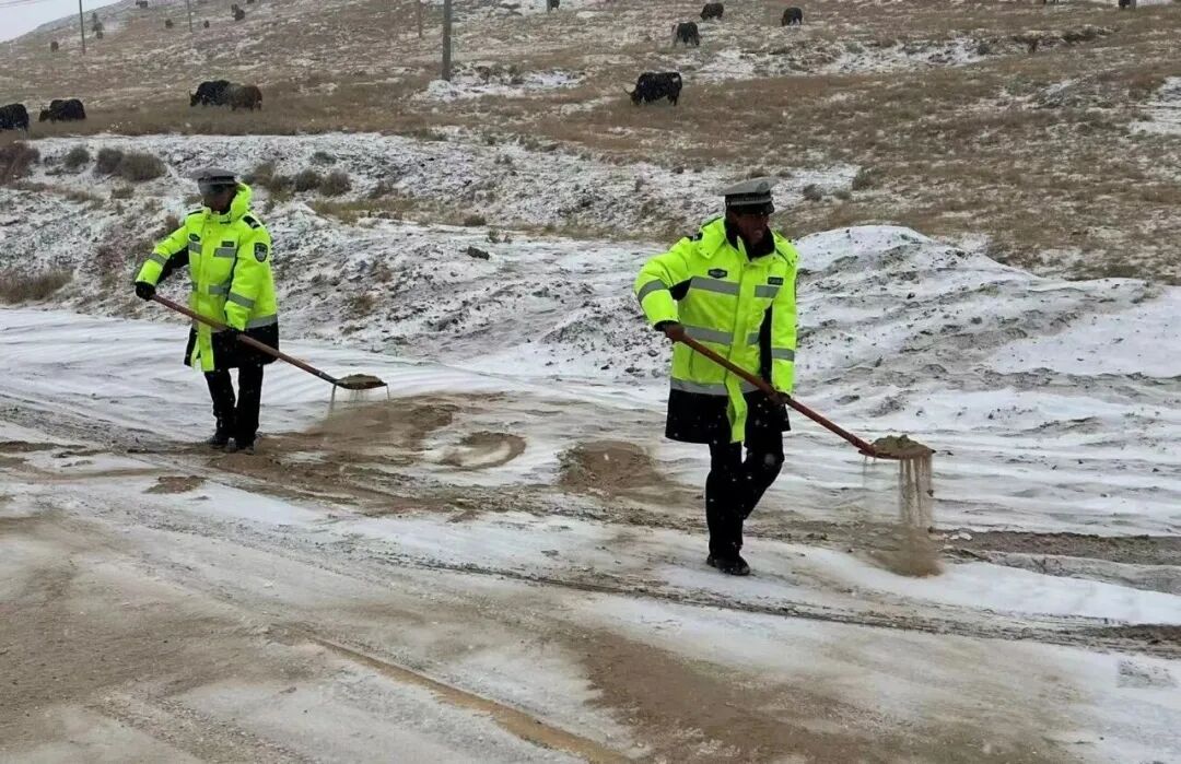 1月24日,受强冷空气影响,仲巴县迎来大风、降温和雨雪天气,部分道路出现积雪结冰,给交通安全带来严峻考验。面对恶劣天气,仲巴县公安局以雪为令、闻冰而动,迅速组织交管大队、霍尔巴公安检查站及各派出所全体民(辅、协)警,全力以赴开展除冰清雪、疏导保通工作,为群众安全出行筑起一道坚实屏障。