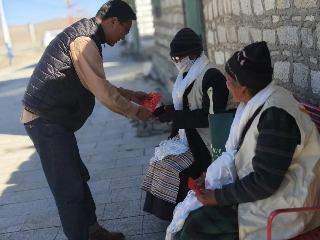 自治区文化和旅游厅驻帕里镇四社区工作队精心组织了一场别开生面的“学雷锋·文明实践我行动”主题活动。由社区“美丽公约环保小卫士”组成的志愿服务队,走进社区7户80岁以上高龄及孤寡老人家中,用稚嫩的歌声和欢快的舞步,为老人们送去了春日里的第一份温暖 。同时,驻村工作队队员自发自掏腰包,不仅为每位老人购买了牛奶、鸡蛋等生活慰问物资,还为每户送上了500元现金(共计3500元),缓解老人们的实际所需。