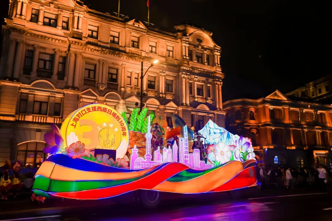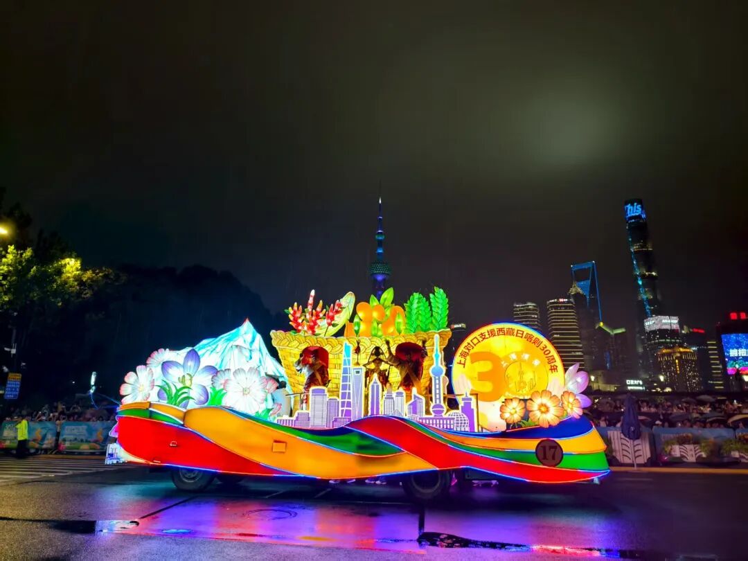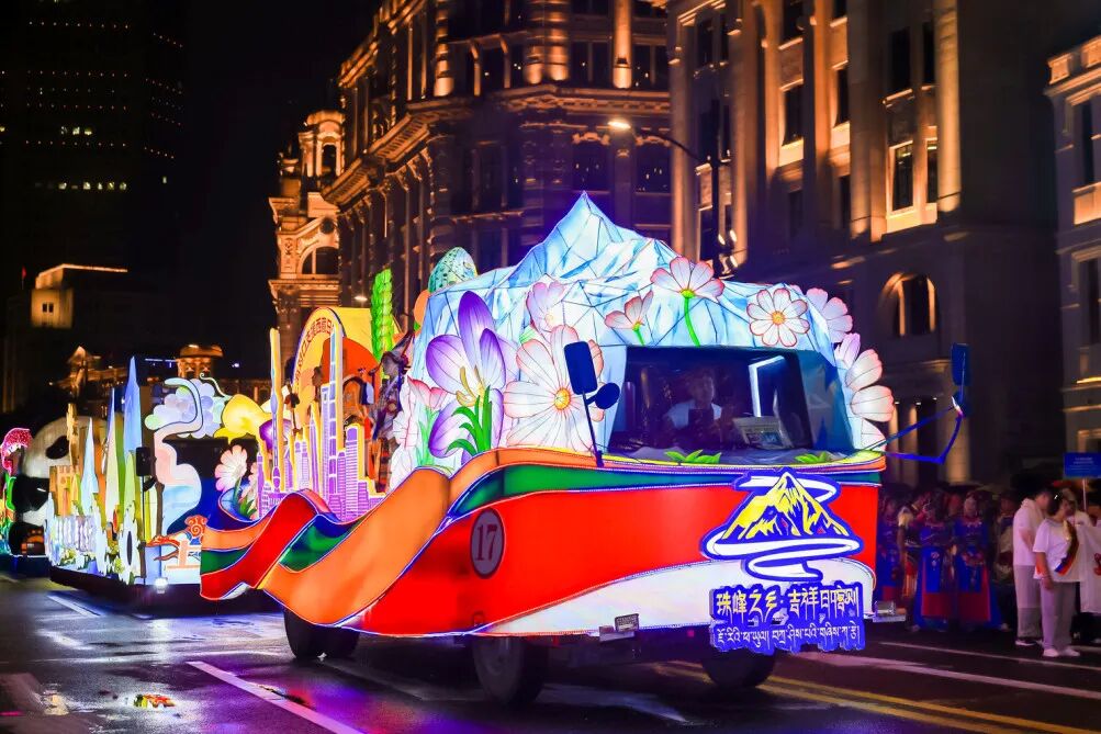 当晚,黄浦江畔灯光璀璨,日喀则花车跻身花车矩阵中,与来自国内其他省份、中国台北市以及日本香川县的花车相映成趣,吸引大量市民游客聚集观赏、互动打卡。后续,这批花车将陆续走进上海静安、普陀、松江、浦东等10个区的11处知名地标、流量商圈,与市民游客近距离互动,日喀则花车也将带着雪域风情、在上海街头继续传递高原魅力。