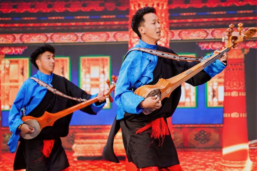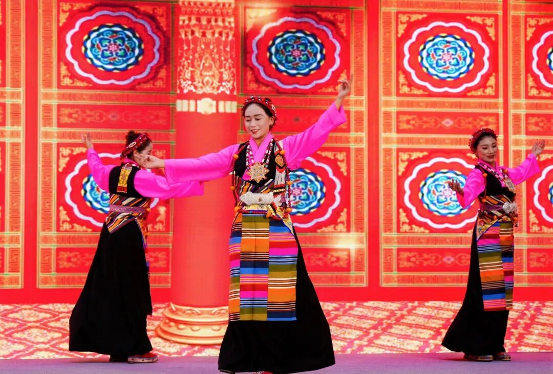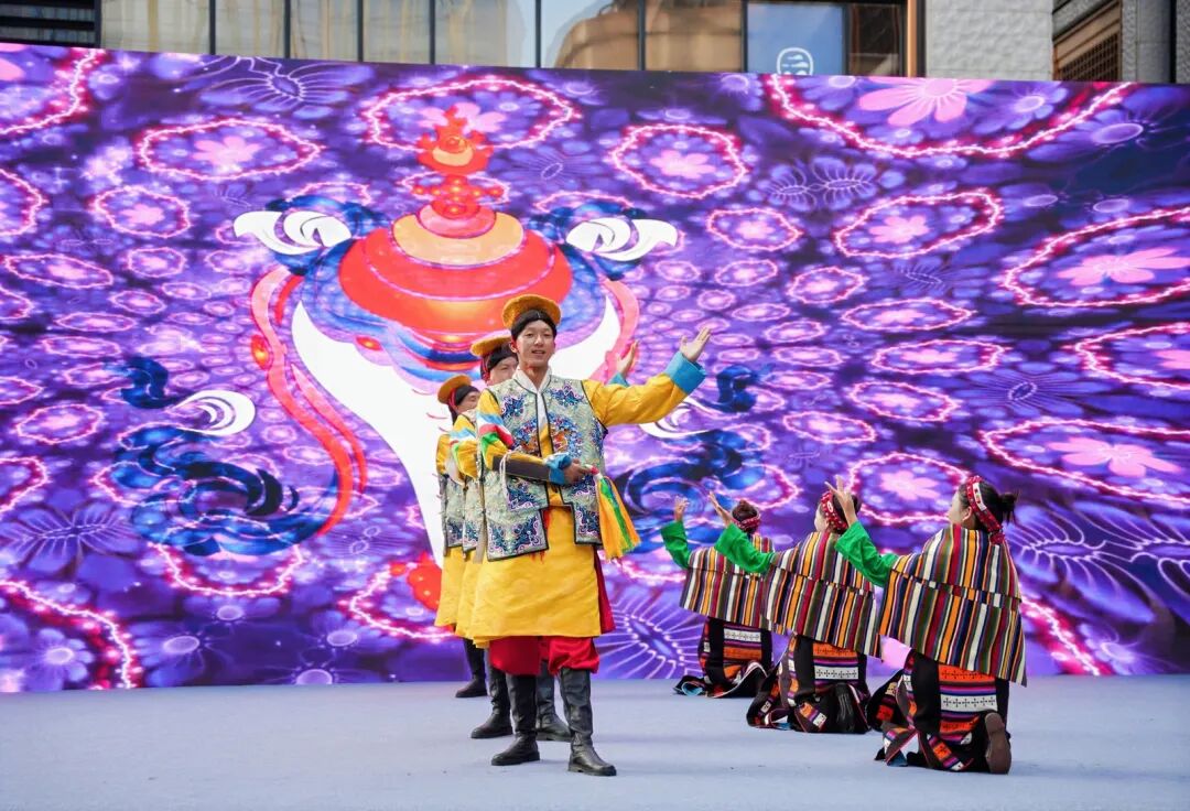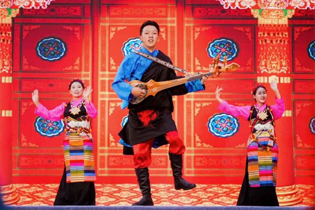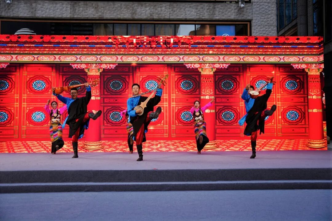 活动临近尾声时,国家级非物质文化遗产“拉孜堆谐”表演登场,将现场氛围推向高潮。这项起源于雅鲁藏布江流域、拥有700余年历史的传统歌舞,以扎念琴为主要伴奏乐器,融合歌舞、说唱与踢踏舞步,节奏明快有力、极具感染力。现场表演的藏族演员身着藏式传统服饰,踩着铿锵的踢踏节奏,伴着扎念琴清亮悠扬的琴音演绎经典曲目,刚劲的舞步落地有声。台下观众纷纷举起手机记录表演瞬间,表演结束后掌声不断。